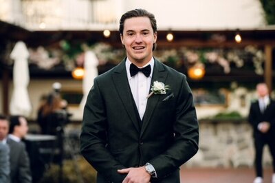 Extend the bespoke experience to your groomsmen with our wedding party packages, now available virtually for groomsmen everywhere. We ensure that every member of your party, regardless of location, looks cohesive and sharp, complementing the overall aesthetic of your wedding. With both in-person and virtual fitting options, trust us to bring sophistication and style to your entire group, making your day even more extraordinary.